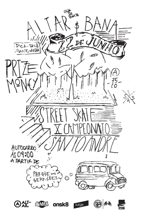 A Altar skate shop chamou a Bana e as duas vão levar um autocarro até ao mítico campeonato em Santo André! É no dia 22 de junho e o autocarro sai do Parque das Gerações, em S. João do Estoril, para transportar a malta até ao Pica-Pau, para mais uma tarde bem passada… com o acréscimo de ainda poderes contar com um Prize Money…