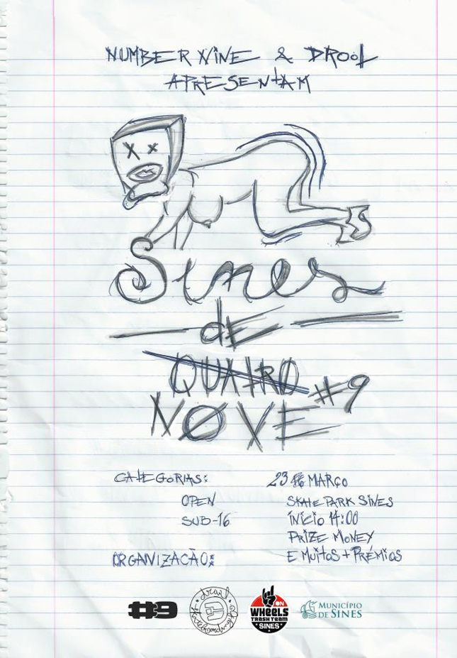 A malta de Sines está sempre actividade e dia 23 há mais um campeonato, organizado pela e #9 Skate shop e pela Droll. É a 23 de março, no skate parque de Sines e vai estar dividida em categoria Open e Sub-16. Com direito a proze money e muitos outros prémios! Aparece. Inicia às 14h.