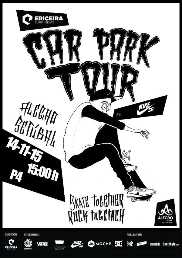 Sábado, dia 14, há mais uma etapa do Car Park Tour! Desta vez é o piso 4 do Alegro Setúbal que recebe a malta do skate para usufruir das condições perfeitas que um parque de estacionamento coberto oferece. Apoiado pela Nike SB, este formato de competição único lançado pela Ericeira Surf & Skate convida os melhores skaters nacionais para um desafio em 3 zonas, sendo que o resultado obtido em cada zona determina 2 skaters finalistas para um combate directo. 500 euros é o Prize Money desta etapa. Os pontos reunidos em Setúbal vão somar-se ao ranking das diferentes etapas e o grande vencedor, apurado na final em Lisboa, recebe uma viagem ao The Berrics.
