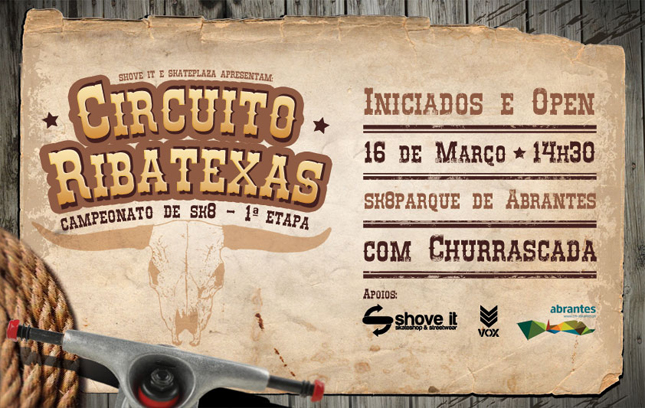 A Skate Plaza, em Tomar, e a Shove it, em Abrantes, estão a organizar um circuito de skate que faz jus aos ribatejanos: o Ribatexas!! A primeira etapa aconte a 16 de março no skate parque de Abrantes, com início marcado para as 14:30. Com direito a churrascada! Não arrisques faltar!
