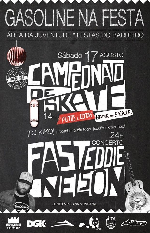 Já tens programa para este sábado à tarde? Pois, acreditamos que não, afinal ontem a noitada deve ter sido agressiva, mas isso não te impede de poderes curar essa dor de cabeça com uma skatada. Aparece no Barreiro, perto das piscinas municipais e espalha o teu hálito de skater no campeonato Gasoline na Festa. Se não tiveres força para subires as rampas podes sempre participar no jogo de skate “putos vs cotas”. Se não tiveres mesmo força para te pores em cima do skate, podes sempre ficar só a curtir a festa com o DJ Kiko e com um concerto de Fast Eddie Nelson.