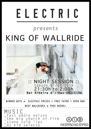 Este sábado, o Bar Ribeira d’Ilhas, na Ericeira, vai contar com uma “night session” para encontrar o Best Wallride da noite. O vencedor ganha prémios Electric, uma tacto e tem bar aberto. Também há cerveja “à pala” para os melhores wallrides e, além de skate, vai haver música com Fast Eddie Nelson, The big Church of Fire, Stone Cold Lips e DJ Kid Selecta.