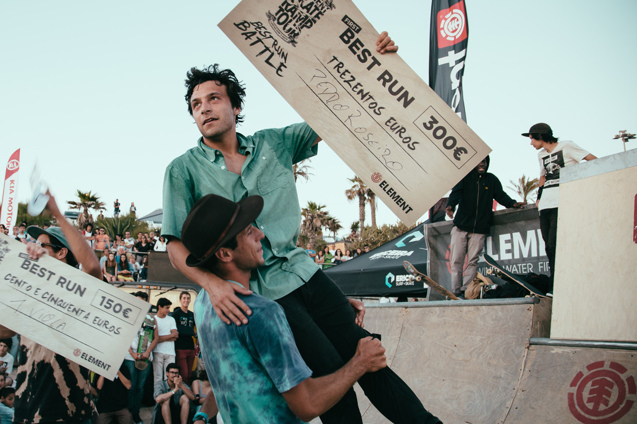 Como se já não fosse fixe estares a skatar ao pôr-do-sol numa bela praia e a ver as belas “paisagens” de verão, quando ainda por cima levas 450€ para casa podemos dizer que é um fim de tarde perfeito. Foi isto mesmo o que aconteceu ao Pedro Roseiro esta passado sábado em Carcavelos. Venceu a prova nas duas categorias em competição, best line e best trick. O João Viola conseguiu também um bocado de sol deste dia e levou os150€ do segundo lugar na battle final para casa. Fica atento ao site da Surge para o vídeo deste belo principio de verão em Carcavelos.