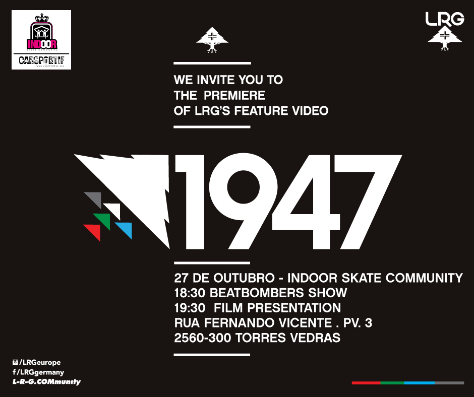 No próximo dia 27 de Outubro a LRG Portugal e a Carsportif têm um programa em grande para a estreia nacional de “1947” o novo vídeo da LRG. O Indoor Skate Community vai estar aberto a todos para uma festa que promete, os Beatbombers vão estar presentes a animar a malta antes da projecção do filme e de certeza ainda vais ter direito a mais algumas surpresas. Entretanto a Surge vai estar hoje em Los Angeles na estreia mundial do filme no Orpheum Theather em Hollywood por isso fica atento ao nosso instagram @surgeskate para mais algumas novidades.