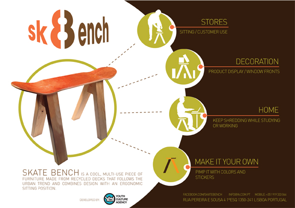 És daqueles que dorme agarrado à tábua? Bom, o “Sk8bench” ainda não tem a versão beliche, mas podes começar pela funcionalidade banco… em breve poderás encontrar nas lojas este artigo, que podes usar como banco ou, até, como elemento decorativo…