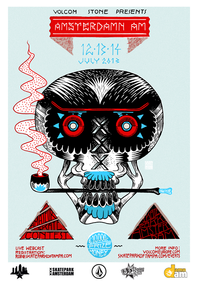 A VOLCOM apresenta a 8ª edição do Amsterdamn Am a ter lugar no Amsterdam Skatepark nos dias 12, 13 e 14 de 2013! Este ano há em jogo um prize money de 10 000 euros (isso mesmo, dez mil) e ainda podes ganhar a tua entrada para participares no Tampa Am!!! Há 12 “lugares” à espera dos melhores…